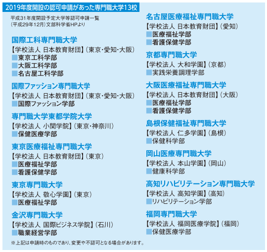 2019年度の開設に向けて、専門学校を運営する9法人から
